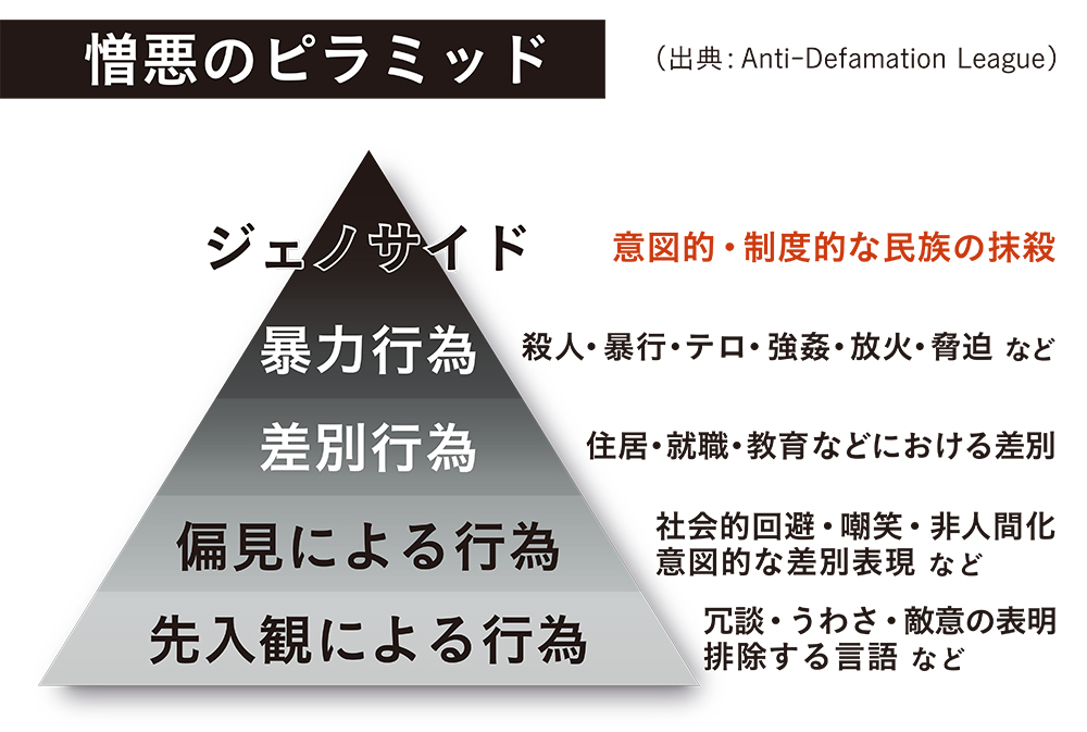 今日のお話しの中で、「憎悪のピラミッド」を知りました。